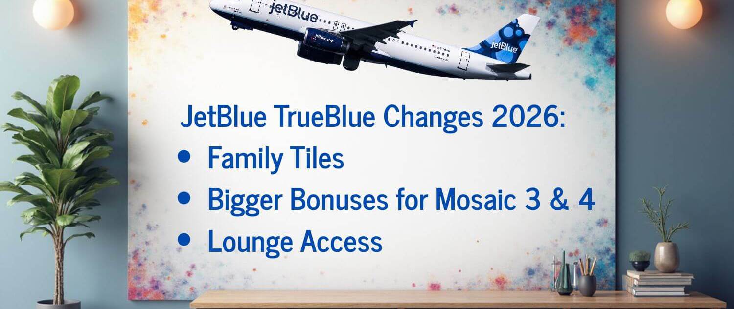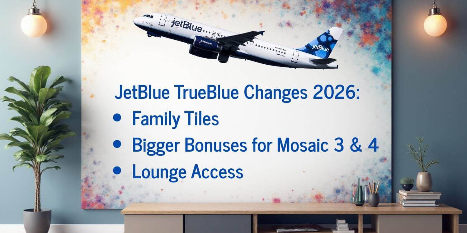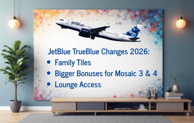 JetBlue is making some cool changes to its TrueBlue program in 2026 (official press release here). From February 1, 2026, if you’re a higher-level Mosaic member, you’ll get even more bonus points when you book flights directly with JetBlue. Also, your Mosaic perks will be good through January 31 each year, which is one month longer than before. They’re also adding a Family Tiles thing where kids’ tiles (if they’re 12 or under) can help adults in their group get status. Plus, Mosaic 4 members will get four Move to Mint certificates and free entry to JetBlue’s new BlueHouse lounge at JFK.