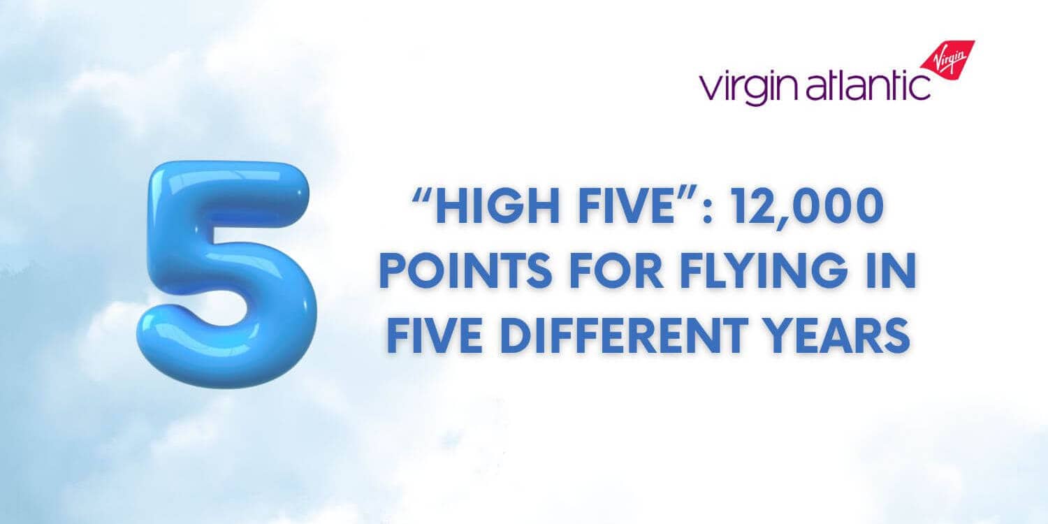 Starting January 2026, Virgin Atlantic’s Flying Club is giving out a sweet bonus called High Five. Basically, if you’ve flown with them in five different years since January 1, 2021, you’ll get 12,000 Virgin points! Here is their press release.